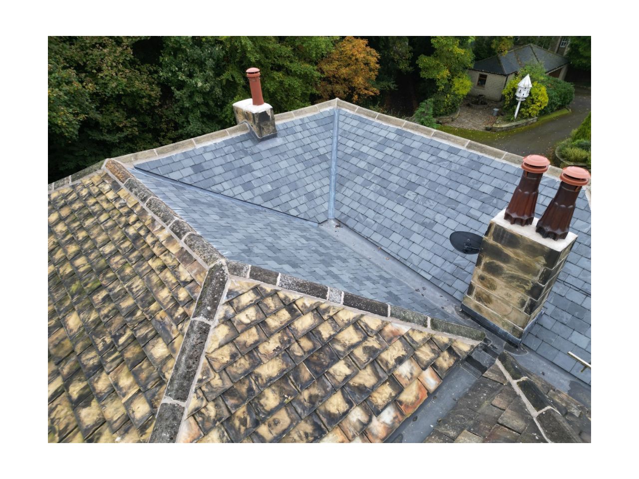 Initially we carried out a full survey and provided a full roof condition report for the client to consider their options including full roof replacement to include the horizontal valley gutters and all lead flashings and valleys.