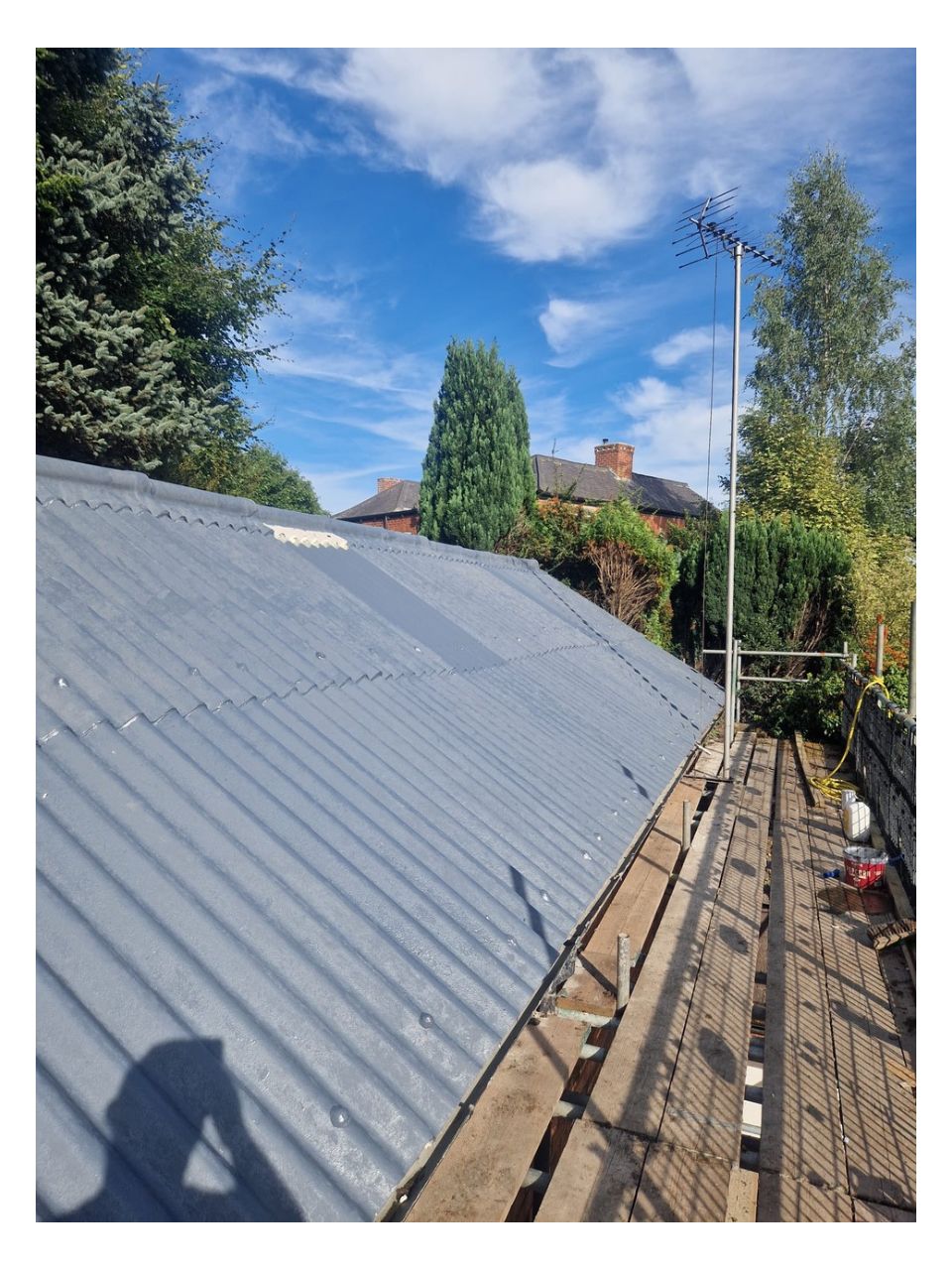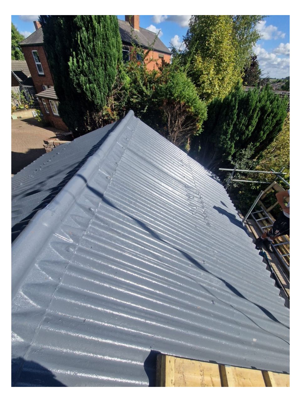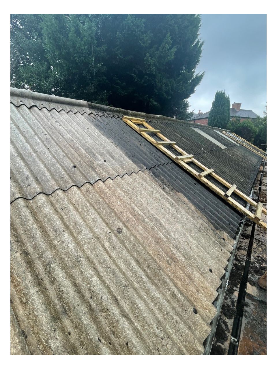 Over treatment to an aged existing asbestos roof at a veterinary practice. This method offers a very cost effective solution to asbestos removal and installation of new panels.
