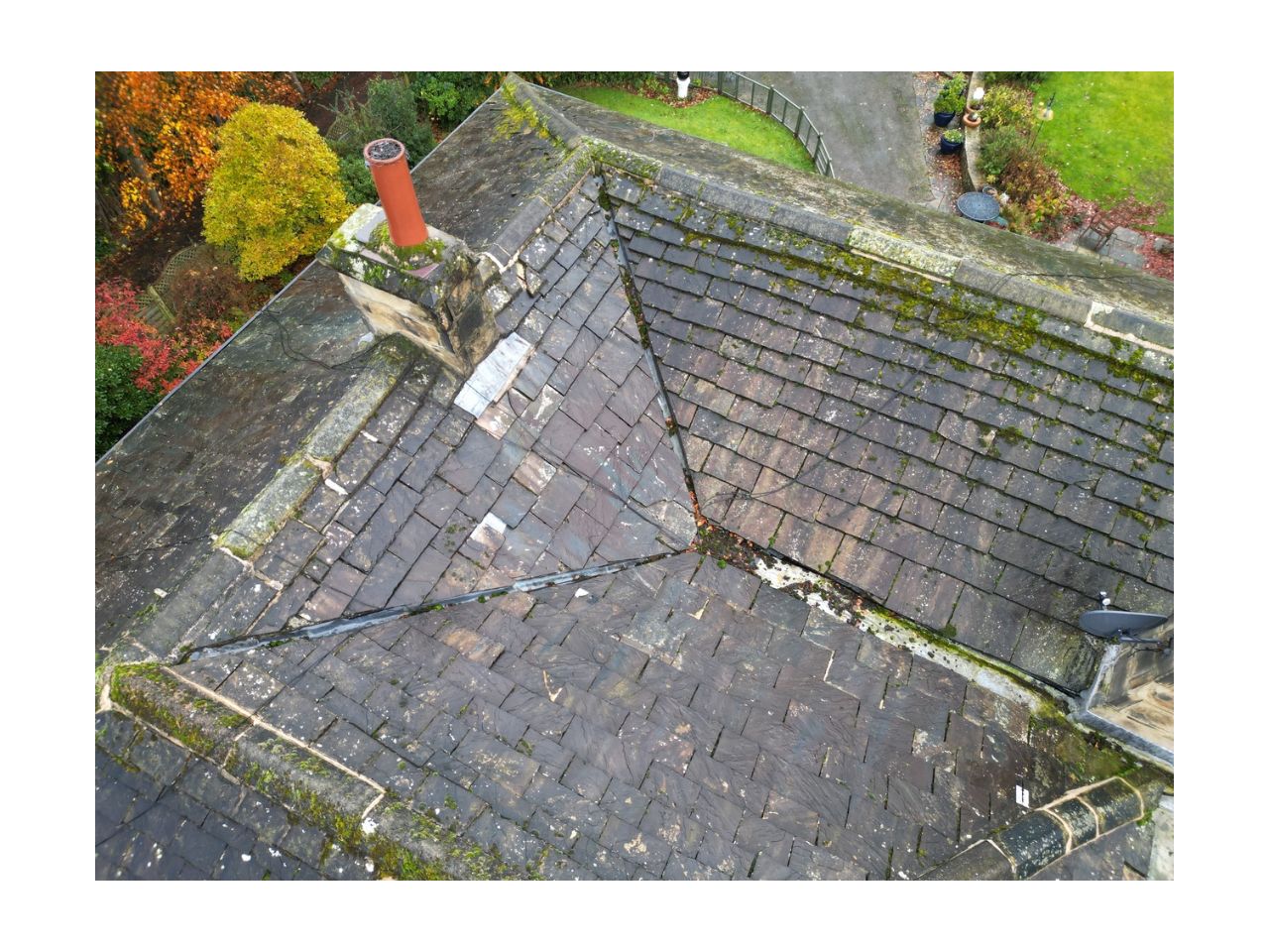 Initially we carried out a full survey and provided a full roof condition report for the client to consider their options including full roof replacement to include the horizontal valley gutters and all lead flashings and valleys.