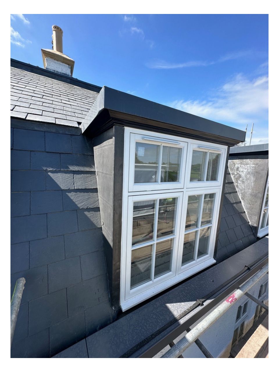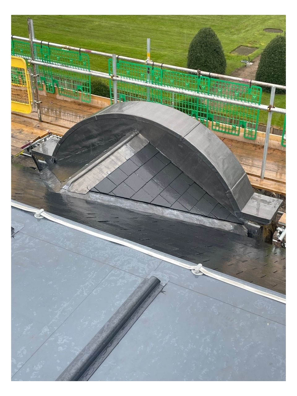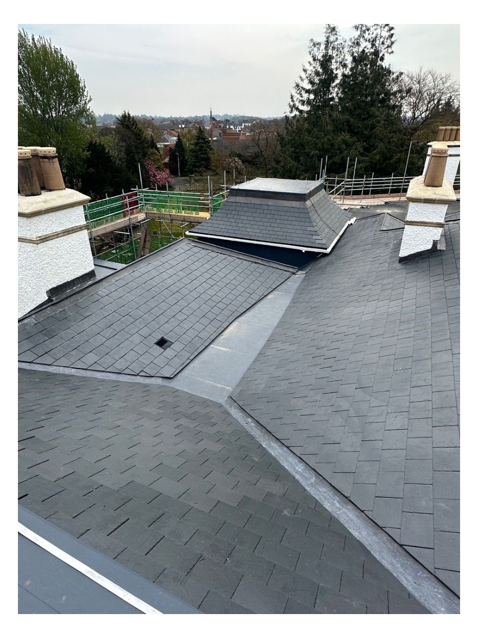 We carried out a full replacement to all pitched and flat roofs, along with the re-lining of the gutters with aluminium profiled pressings and all lead flashings. We used a variety of different materials such as natural slates, self adhesive built up felt, single ply membranes and bespoke lead fabrication in order to meet the planning requirements.