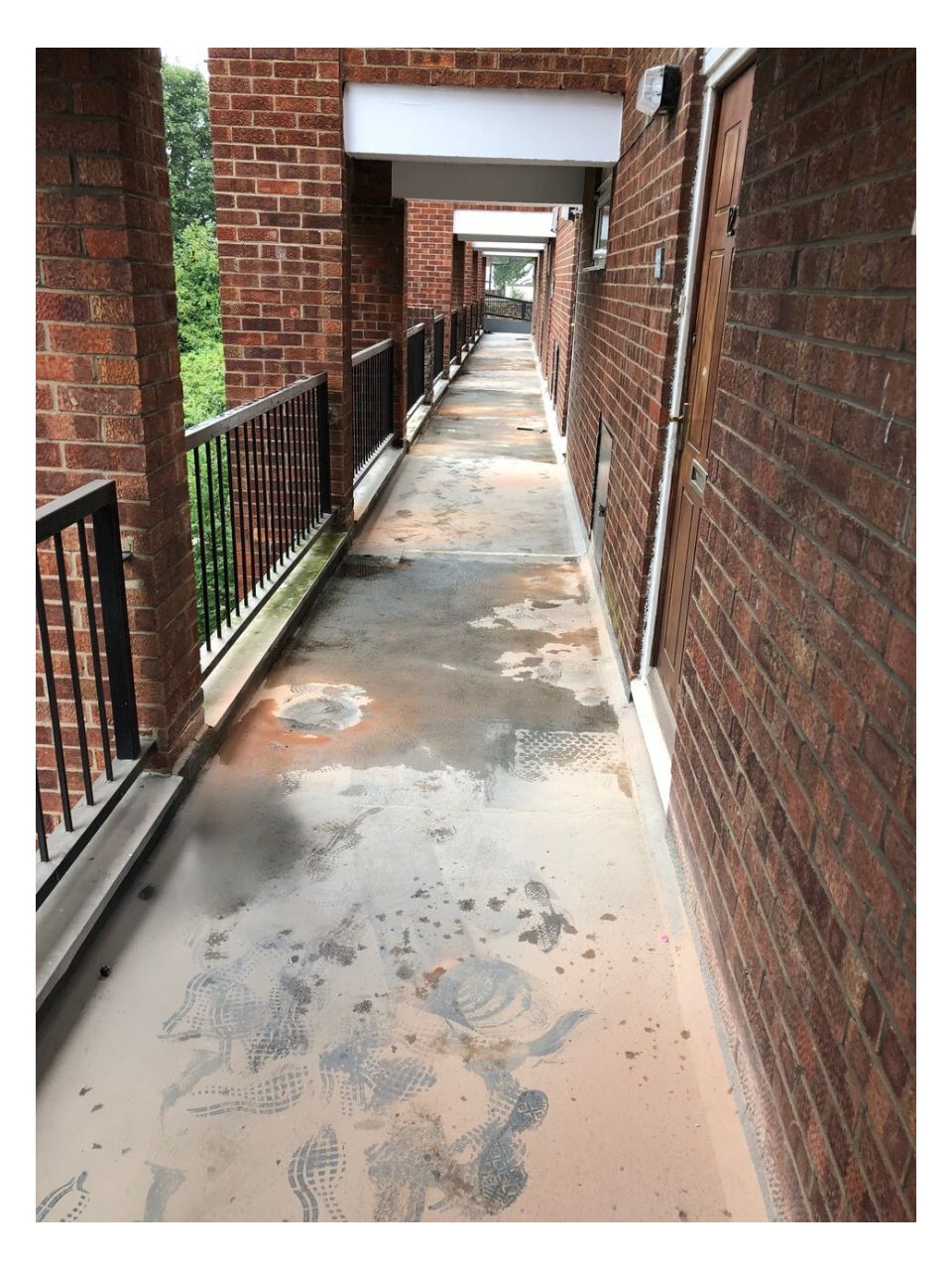 Treat a number of walkways around the three apartment blocks. Coordination was key when dealing with domestic households and peoples need to be in and out of their homes whilst works are underway.